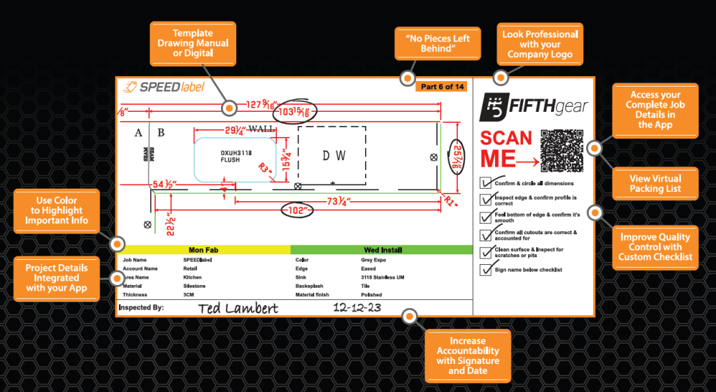 How you design your SPEEDlabel®️ may differ greatly from shops that are bigger, smaller, more focused, or niche providers. But each one is a treasure map of the unique workflow which turns signed contracts into finalized rooms complete with bespoke countertops in a variety of materials.
